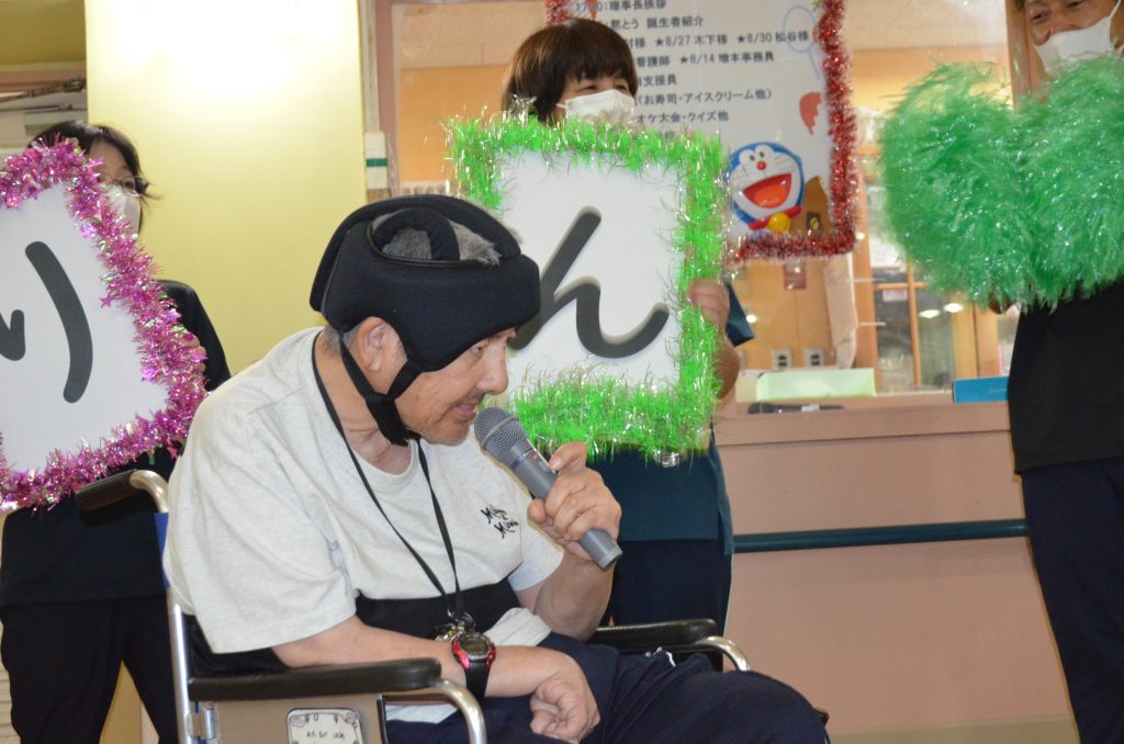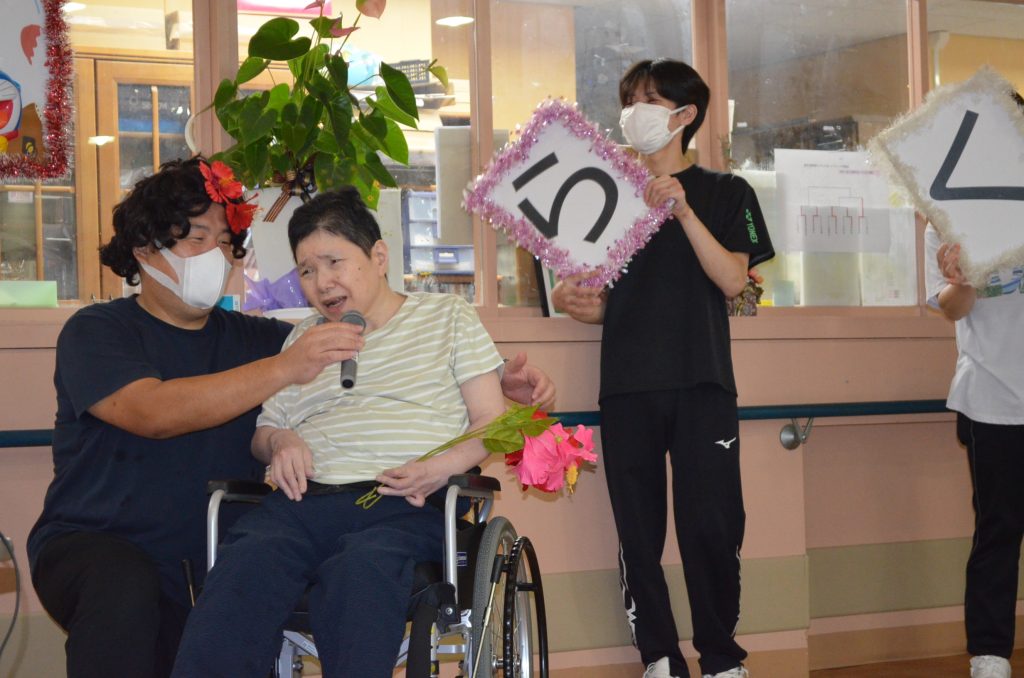 その後、3つの棟の代表者によるカラオケ大会を行いました。皆さん練習の成果を存分に発揮され、素敵な歌声を聞くことができました。また職員による応援も素晴らしかったです。