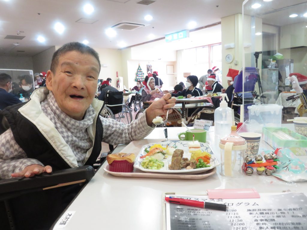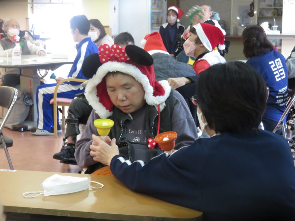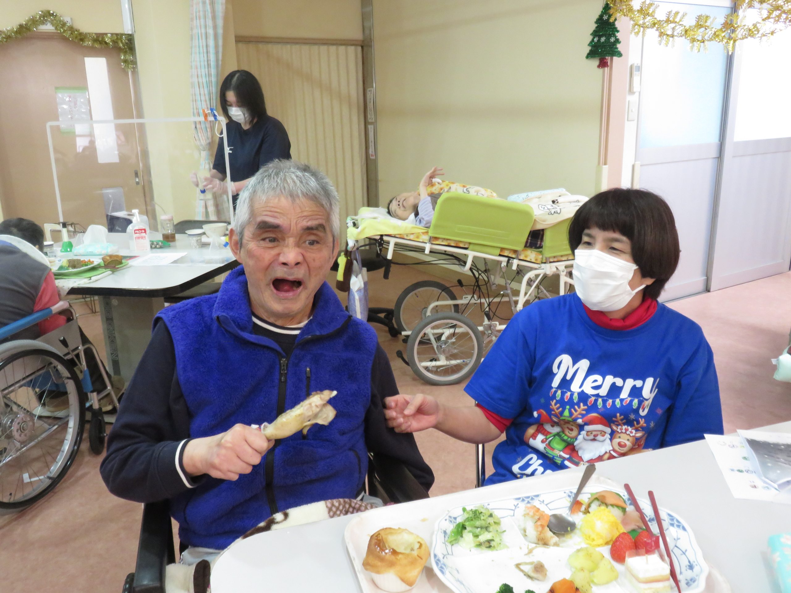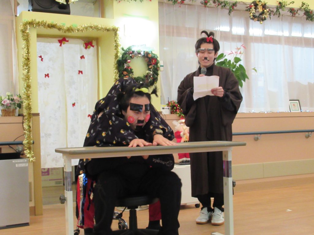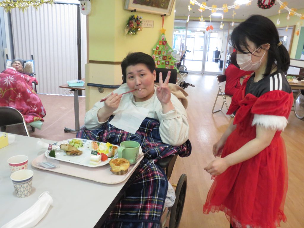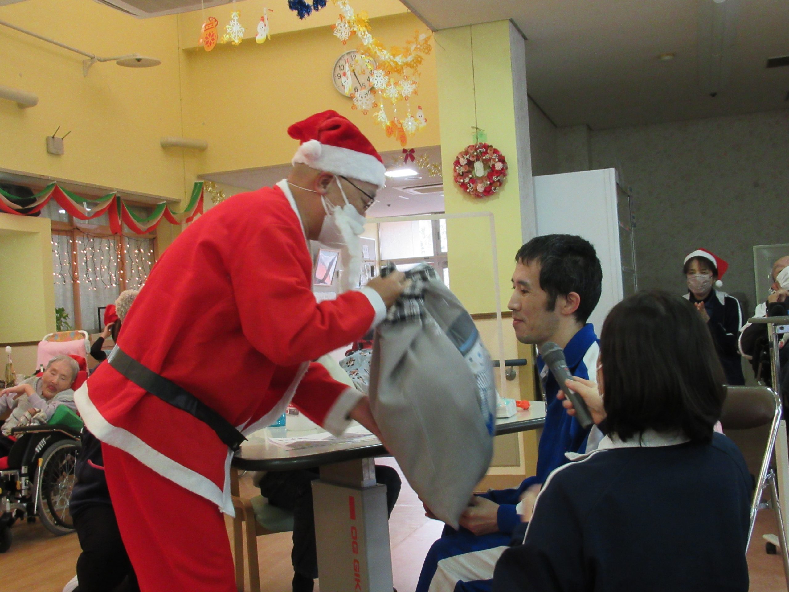 湯免清風園☆クリスマス会 Posted on 2025年12月23日 by 社会福祉法人清風会 統括本部事務局 12月15日、湯免清風園にてクリスマス会を行いました。利用者様もクリスマスコスチュームを身につけて参加しました。 施設長サンタさんよりプレゼント🎁 マジックショー!! 二人羽織で会場を笑わせてくれました♪ ダンスを披露♡ 食事はパンのバイキングをしました。チキンやケーキ、シャンメリーも準備されており、利用者様は喜んでおられました!! ハンドベルや鈴を使ってジングルベルを演奏♪ 職員の出し物や利用者様の素敵な演奏もあり、楽しいクリスマス会となりました☆